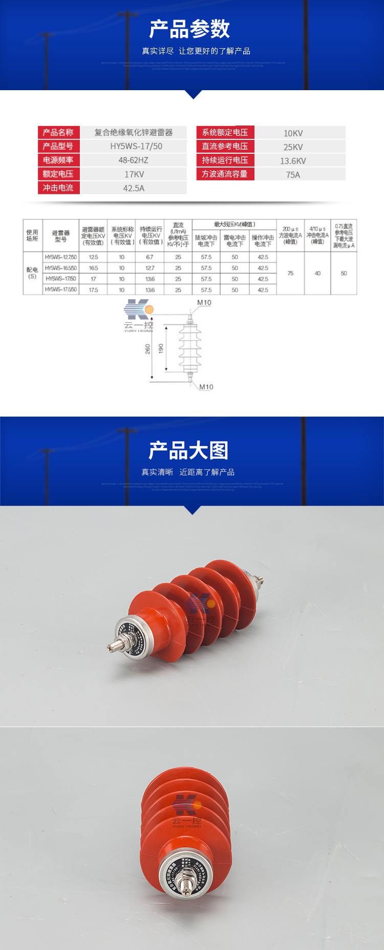 10kV配電型高壓避雷器HY5WS-17/50
